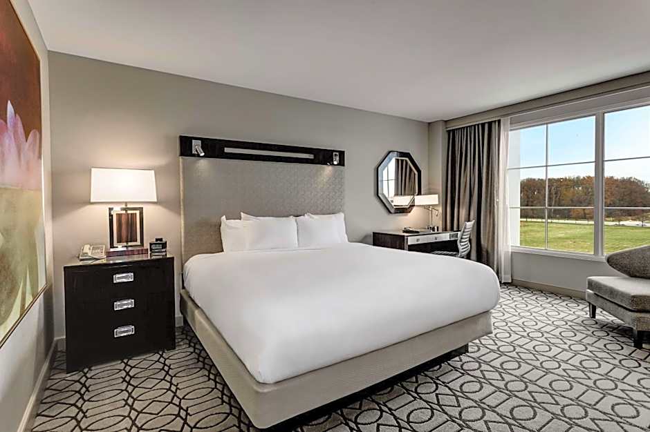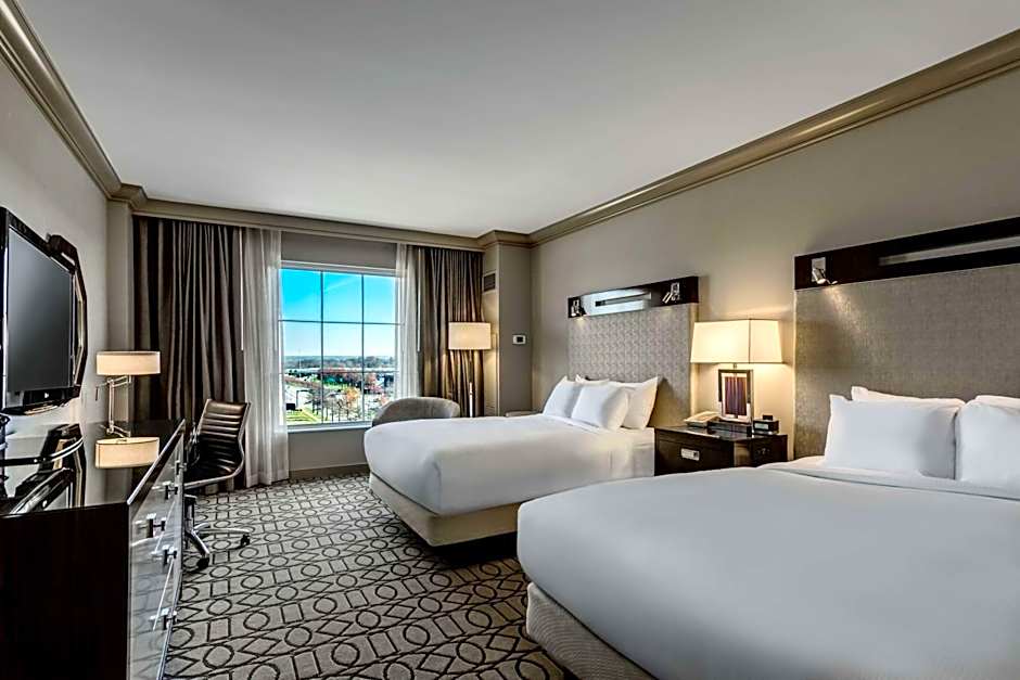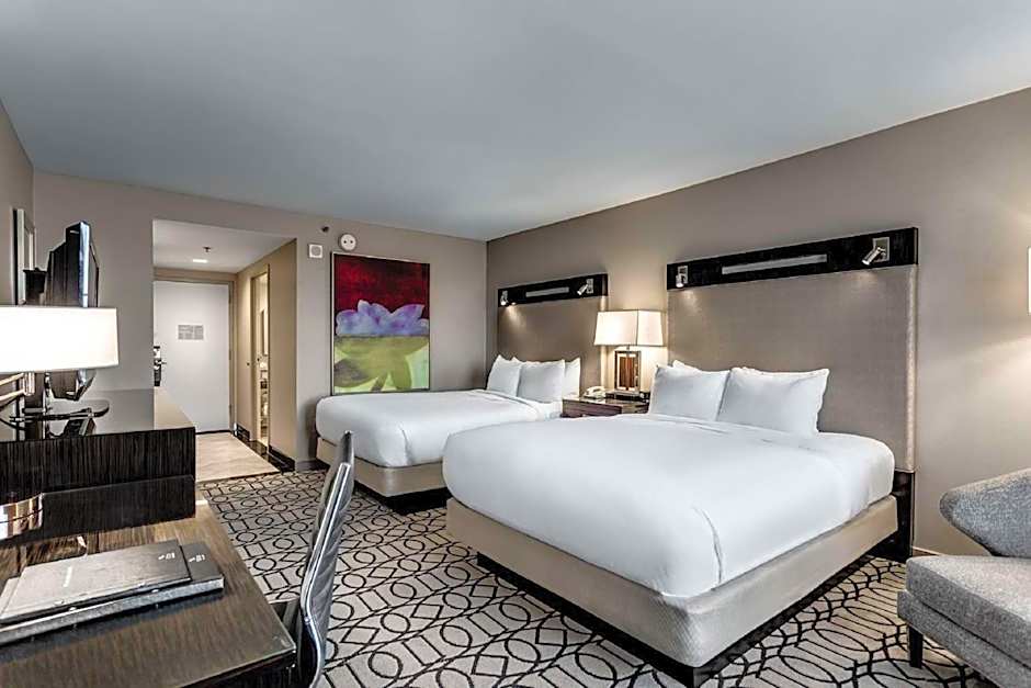 Relax in this beautifully renovated, 400 sq. ft. room with one king-sized Hilton Serenity bed featuring our exclusive Suite Dreams mattress. Your contemporary style room offers a refrigerator, an in-room safe, an alarm clock stereo with charging dock and a coffeemaker for you to enjoy a freshly brewed cup of coffee. Refresh in our Italian marble bathroom which features either a bathtub or a walk-in shower, deluxe amenities and a fogless lighted mirror. Catch up on work at the desk and keep in touch with complimentary basic WiFi or upgrade to premium WiFi (fees apply for premium WiFi). Relax and watch the 37-inch HDTV. Enjoy private key access to the Executive Level, luxurious bathrobes during your stay, turn-down service and valet parking. Executive Level guests also receive a hand-crafted Starbucks coffee.
